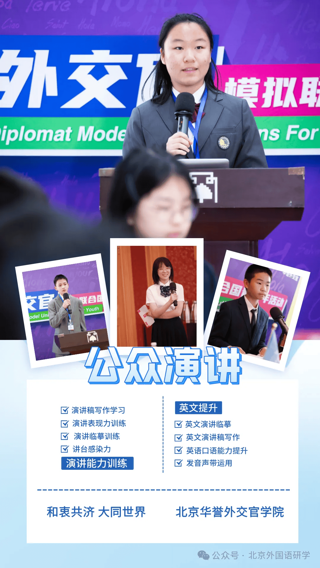 华誉外交官国际时文课程,以“热点事件为载体、英语提升为核心、思维培养为目标”,由原外交部外交官培训团队+外交名师联合授课,将各类中国热点、国际动态、文化事件融入英语教学,通过专业老师的深度分析解读,让学生在读懂事件本质的同时,全面提升英语听说读写思辨能力,实现“学英语、懂世界、强能力”的三重突破。